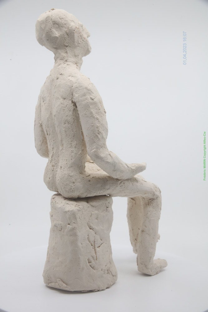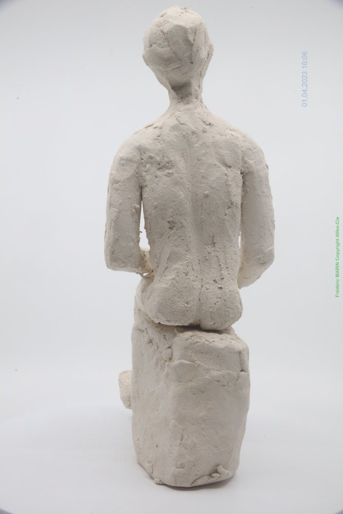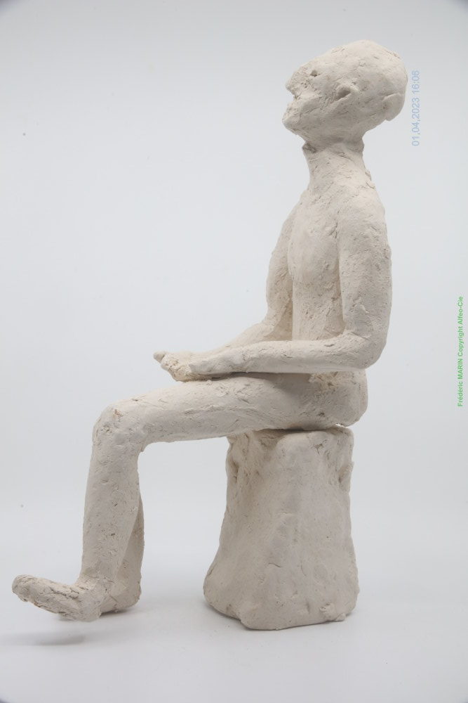 Un penseur, nu, fait de terre, intercédant pour son monde en plein renouveau …