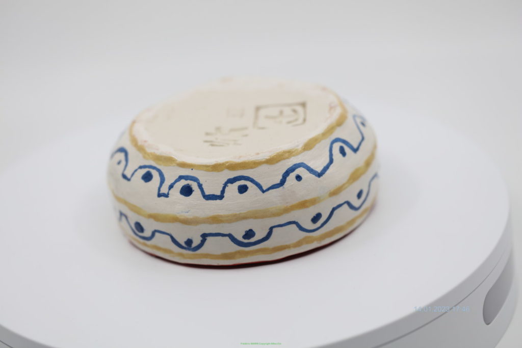 Une coupe de seconde génération, de taille basse, montée au colombin, et décorée à l’engobe ; elle est destinée à la présentation de “mezze”